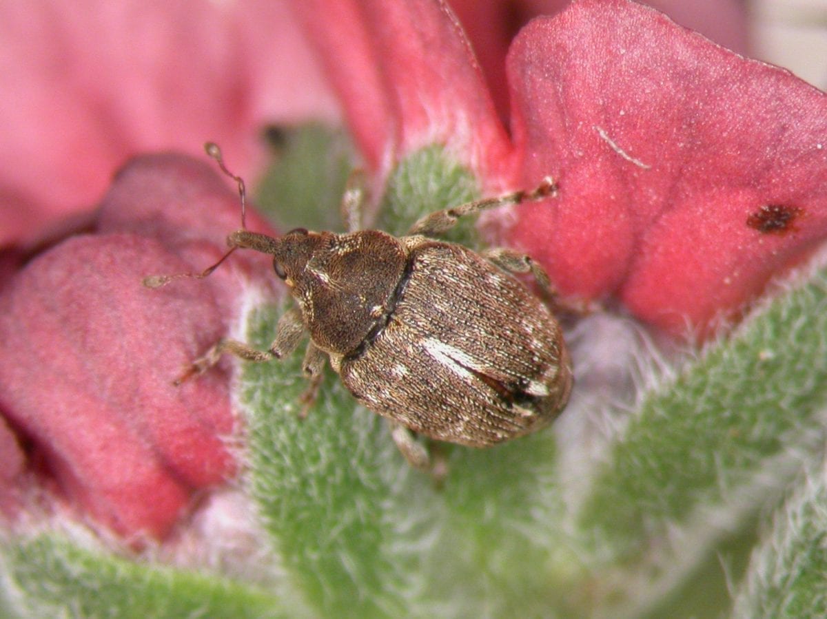 As houndstongue relies on seed for reproduction and spread, an agent that destroys seed could be useful, but only if it inflicts significant damage. We found that either adult feeding or larval mining halved houndstongue’s seed output, on average, with up to 89% of seeds destroyed.